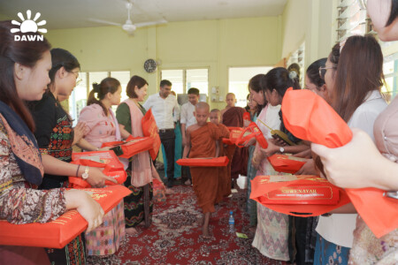 On November 3nd, 2024, the DAWN Microfinance family came together in a spirit of generosity and unity to offer Kahtain robes and other meaningful donations to the venerable monks at Mahar Gandar Yone Monastery in East Dagon Township, Yangon. This tradition holds deep cultural significance, emphasizing the importance of charity and compassion.